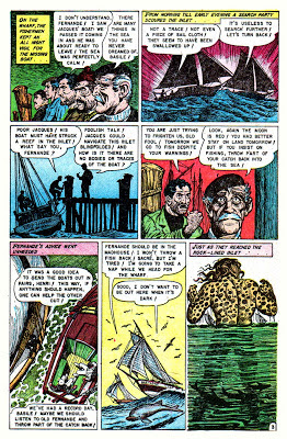 It's been a long time since we've done a comparison between a pre-code horror classic vs. its later black and white Eerie Publication remake. So here's a good one, and this time I'll bypass the link to the story I originally posted back in 2011 and just re-post it here again after the remake. "Creature of Evil" from the March 1971 issue of Terror Tales #V3#2 is a complete re-draw of Lou Cameron's mind-bending monster masher "The Moon Was Red" (originally presented in the May 1953 issue of Web of Mystery #18.) See which one you like better-- being a complete Cameron fanatic, you already know my answer! Enjoy, and maybe we'll do a few of these comparisons for the next couple of posts-- sound good?